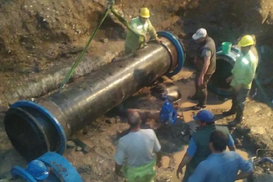 La empresa estatal Aguas Rionegrinas luego de una larga noche de trabajo, finalizó esta mañana con la colocación de la pieza de fundición sobre el acueducto principal de la ciudad.