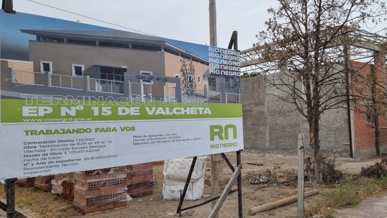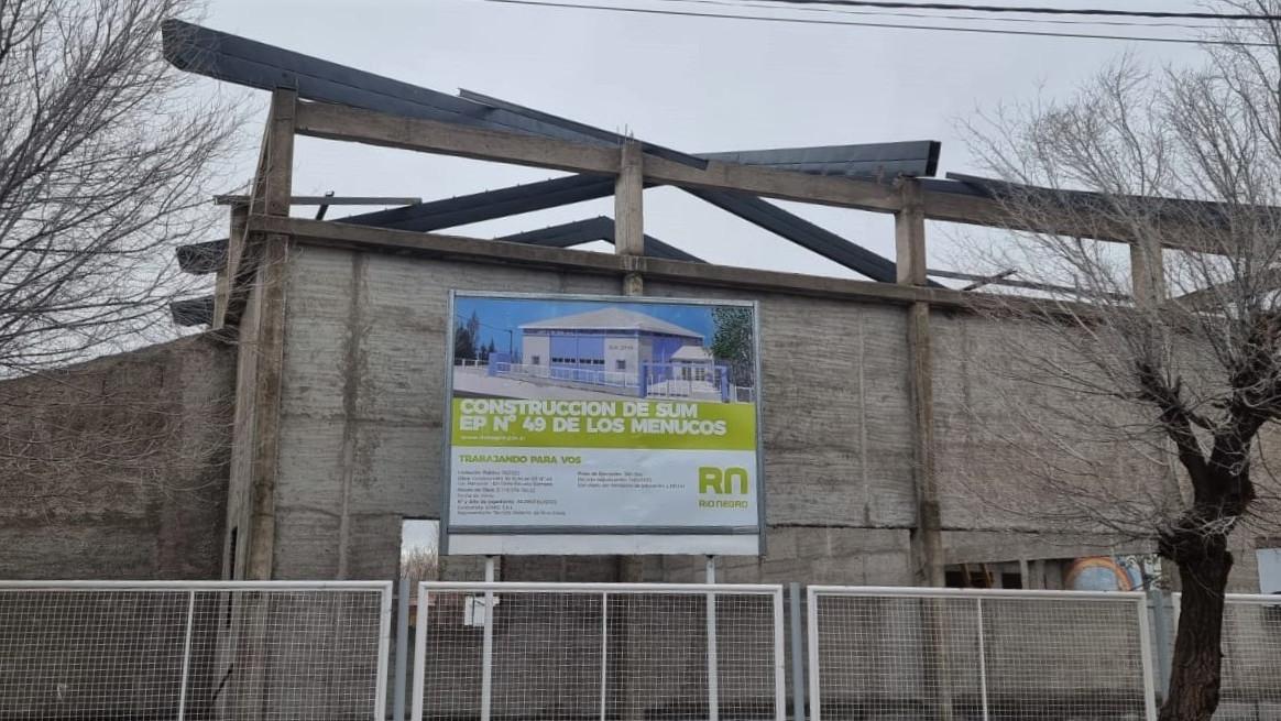 El Ministerio de Educación y Derechos Humanos lleva adelante , y a buen ritmo, la obra del Salón de Usos Múltiples (SUM) de la Escuela Primaria N° 49 "Rafael Lanfré", de Los Menucos.
